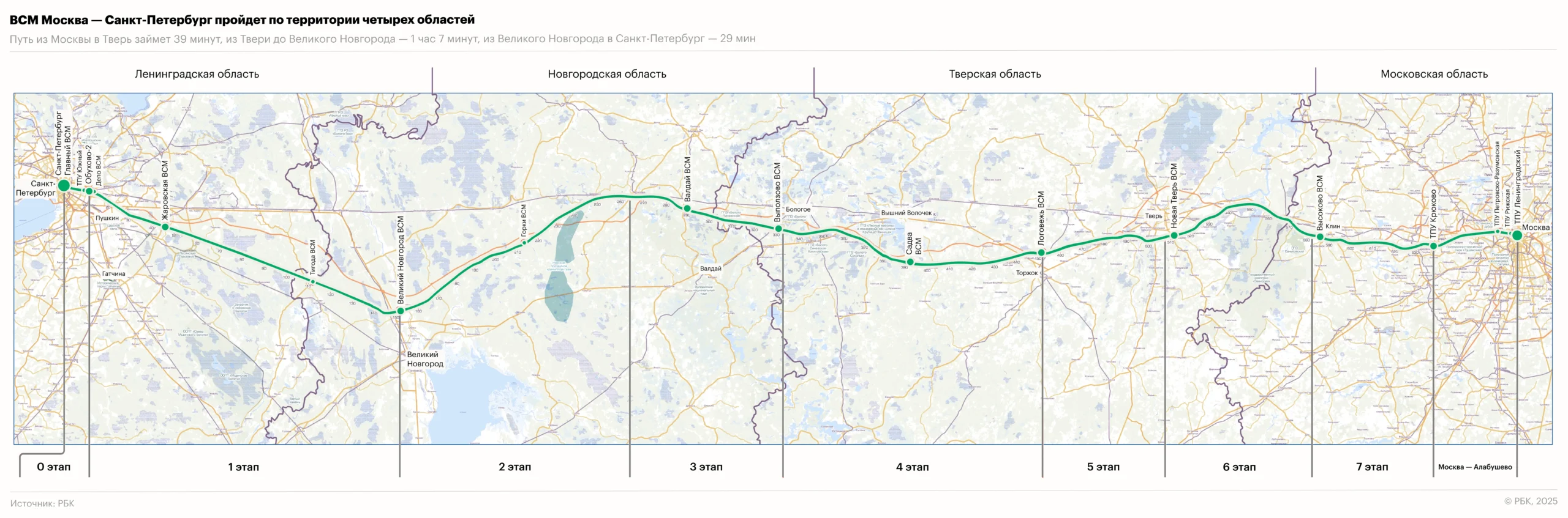 ВСМ Москва — Санкт-Петербург станет одной из крупнейших транспортных инициатив в России. Ее протяженность составит 679 километров, а открытие намечено на 2028 год.